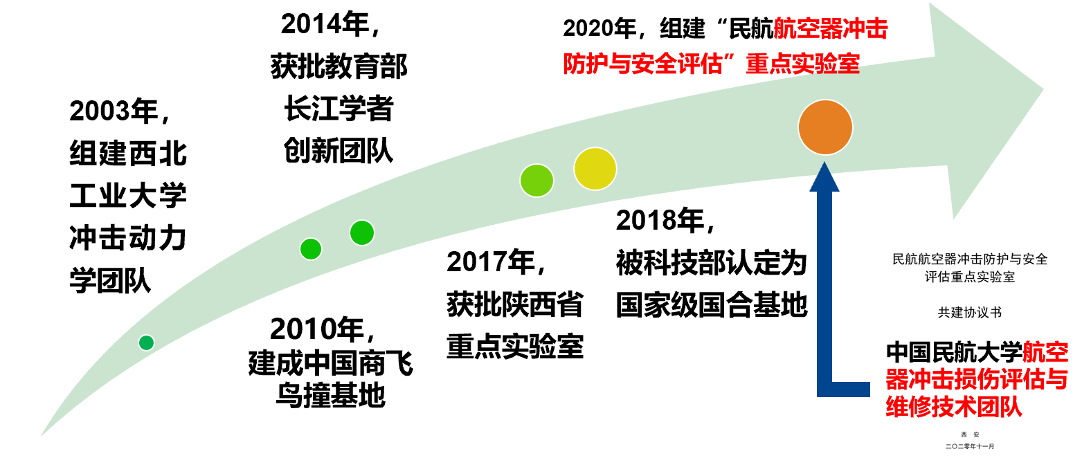 是牵头建设单位,实验室以科技部冲击动力学及其工程应用国际联合研究中心、陕西省冲击动力学及工程应用重点实验室、天津市民用航空器适航与维修重点实验室为建设主体,以服务国家重大发展战略、解决民航行业发展需求、保障民航安全与经济运营、提升民航国际竞争力为建设目标。近二十年来,实验室一直致力于航空器冲击防护与安全的前沿基础和工程应用研究,为我国民机的研制、安全运营和持续适航提供了坚实的科技支撑与技术服务,在民航领域科学研究和人才培养方面取得了一系列突出成果。
